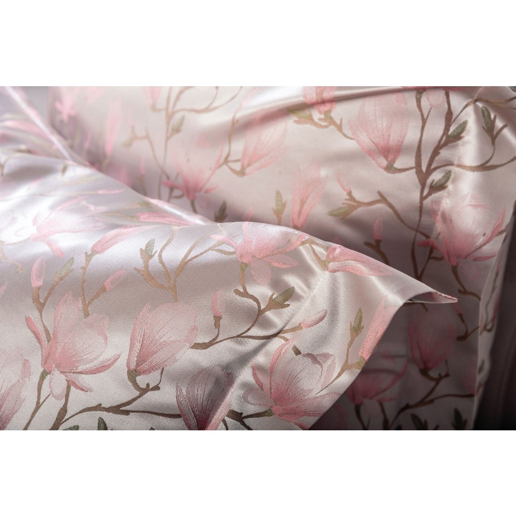Kvetoucí magnólie, které jsou detailem hedvábného povlečení, představují ve vaší ložnici obraz elegance a blízkost přírody. Vícenásobný vzor Jacquard zachycuje krásu přírody a přivádí ji do vašeho osobního prostředí, což určitě dává vaší ložnici teplou a příjemnou atmosféru.
